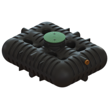 Finnes også som variant med integrert pumpebrønn og pumpe dersom det er behov for å pumpe vannet til markbedet/infiltrasjonen.