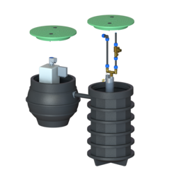 Anläggningen består av vår mest populära slamavskiljare med extremt bra slamavskiljningsförmåga (0,06g). Utöver detta en flödesstyrd fosforfälla som själv doserar rätt mängd flockningsmedel och du slipper kemikalier inne i huset då denna är placerad i teknikbrunnen. Allt nedgrävt i marken och smälter in i naturen med sina gröna lock.